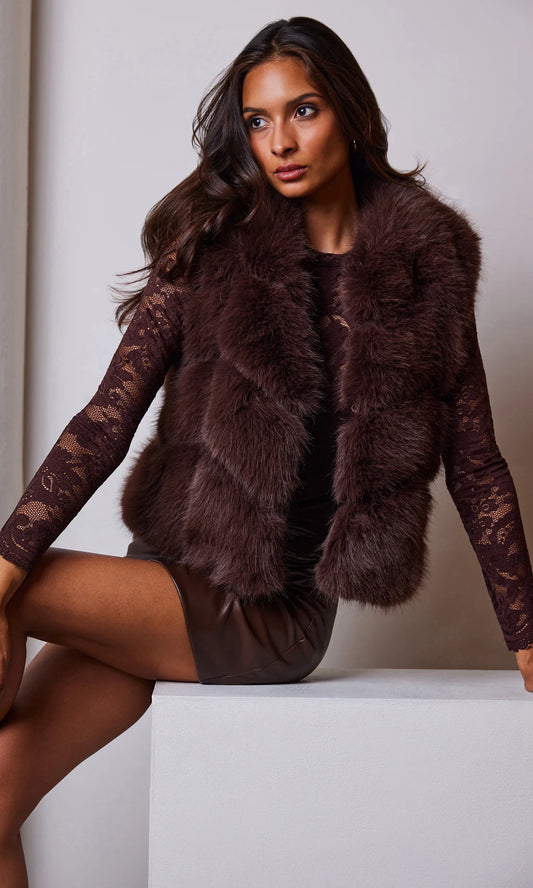 Rosario Faux Fur Vest Brown