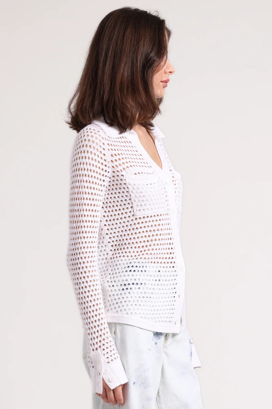 Cotton Cashmere Plaited Mesh Button Down Shirt White