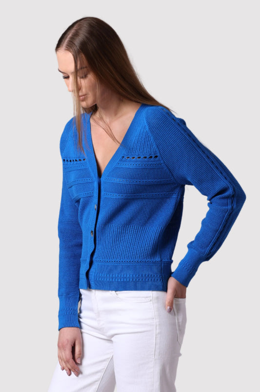Cotton Cashmere Pointelle Mix V Neck Cardigan Bayou Blue