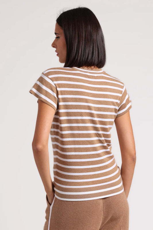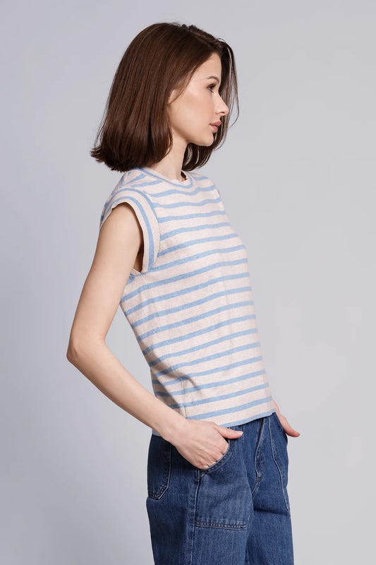 Supima Cotton Cashmere Striped Cap Sleeve Crew