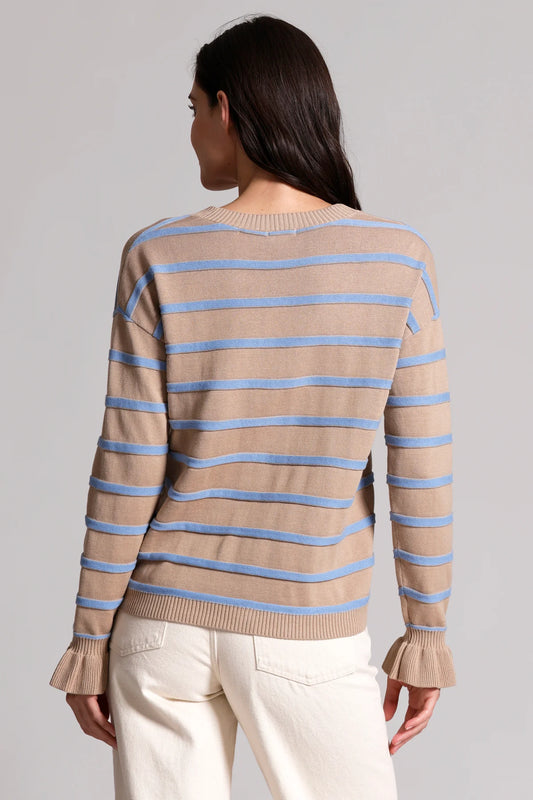 Cotton Textured Stripe Ruffle Cuff Cardigan
