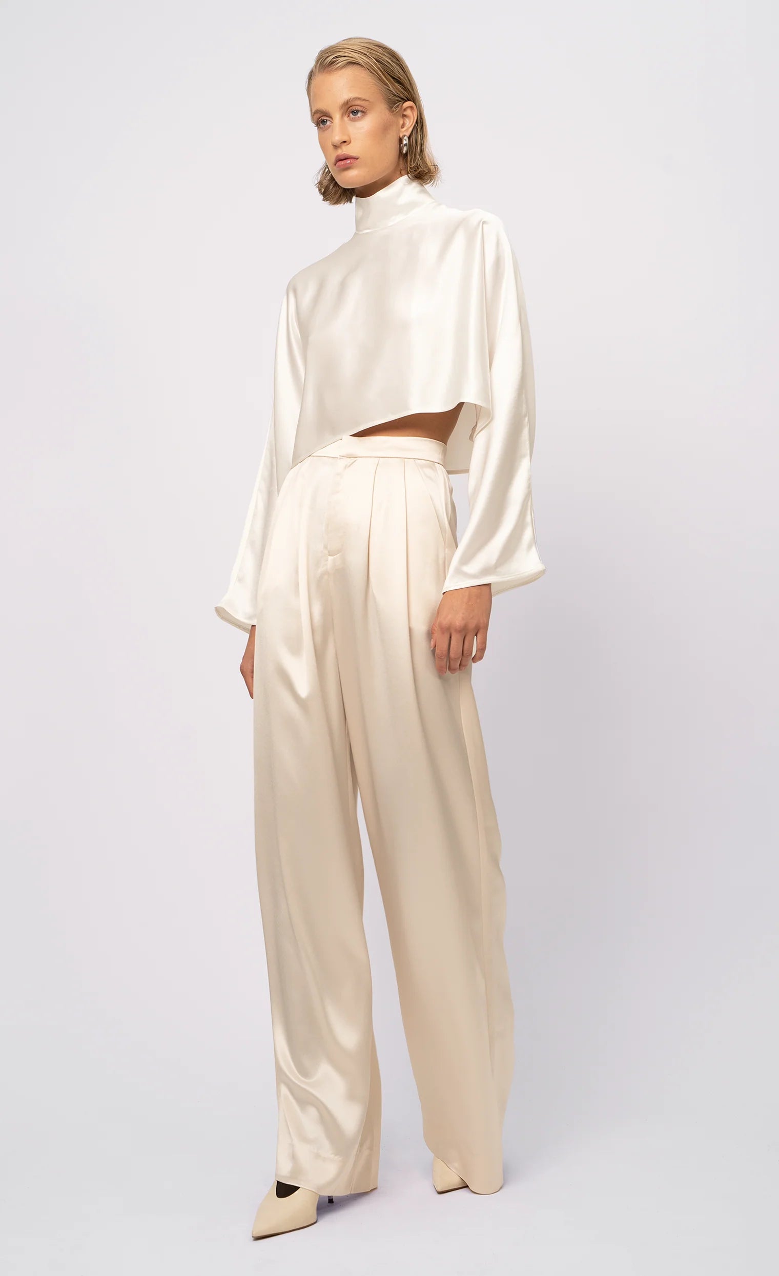 The Ingrid Top is a sleek and elegant core closet staple. Featuring a high neck and clean hem design, this top will add a touch of elegance to any look.