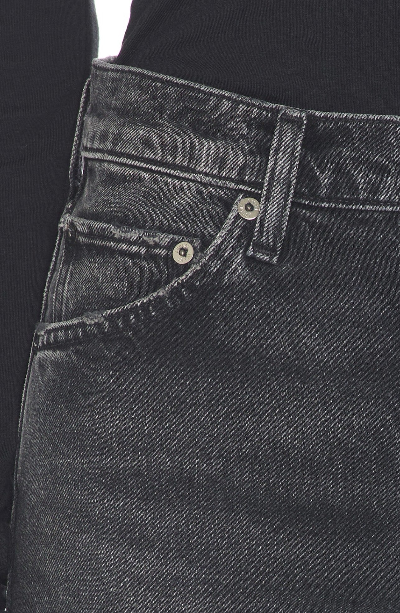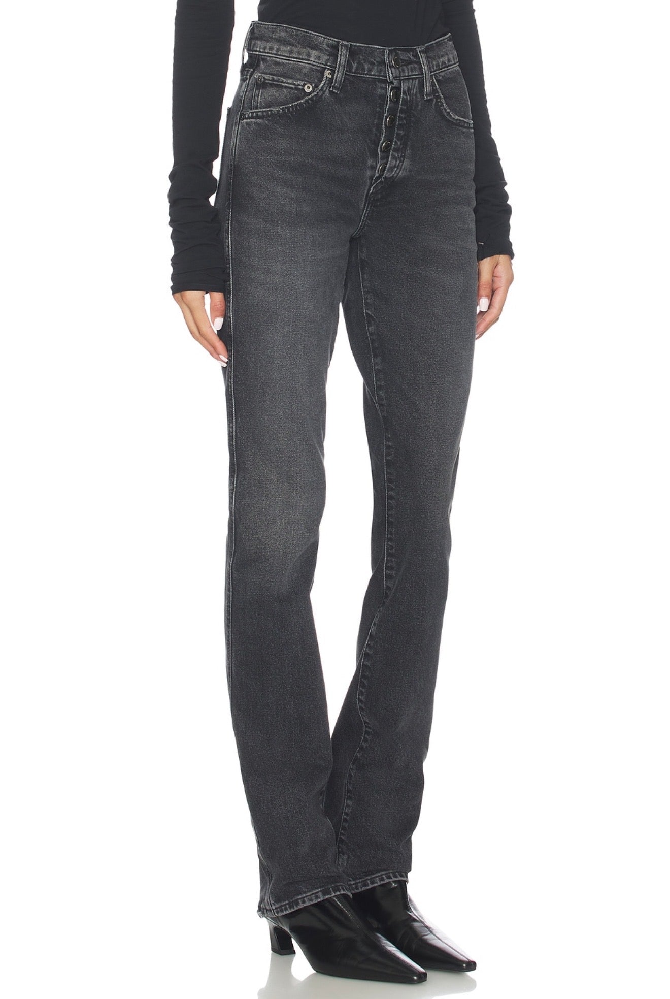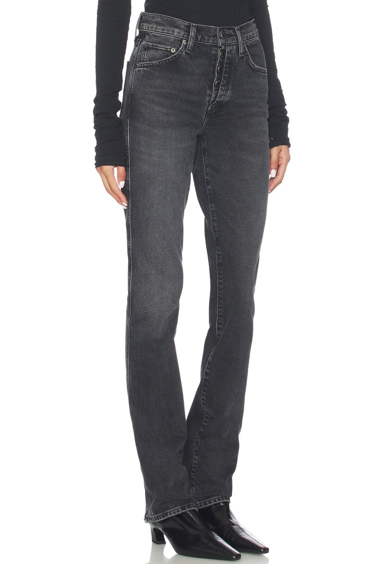 A high-rise skinny with a slim fit and exposed fly. Crafted from soft, comfort-stretch denim, it has a true-to-size fit and a clean, stacked silhouette. In dark vintage black, subtle fading and marbling add texture, making it a modern essential for effortless, elevated styling.