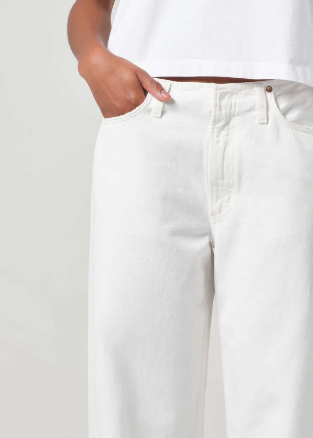 The Lex Jean offers a fresh take on our beloved Low Slung Baggy, featuring a removed waistband for an effortlessly undone look. Designed to sit low on the hips with a relaxed fit through the hips, this pair is crafted from regenerative cotton in crisp, clean white denim. Soft yet structured, the fabric will only grow more comfortable with each wear. Style yours with a fitted tank and sleek sandals for a laid-back yet refined look, or pair with an oversized blazer and heels for a modern, off-duty edge.
