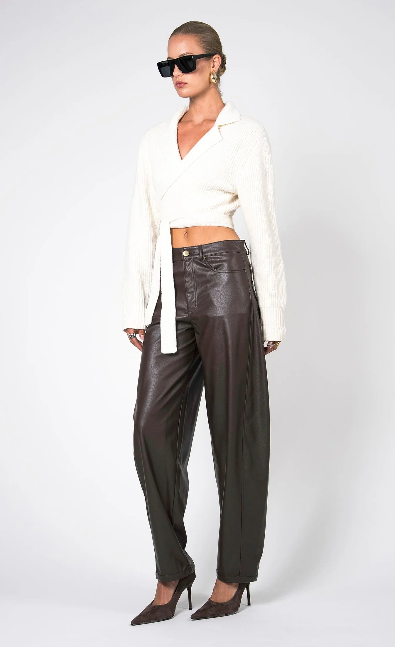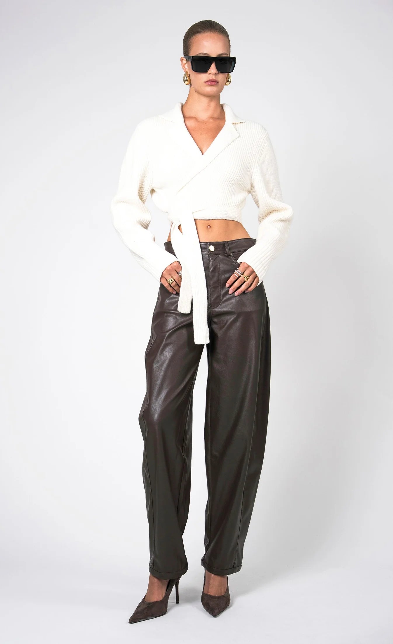 The Misty Sweater is a chic knitwear staple. Crafted from soft ribbed knit, it features a wrap-front silhouette and a collared neckline that balance ease with tailoring. Effortless on its own or layered, it’s a versatile addition to any wardrobe.