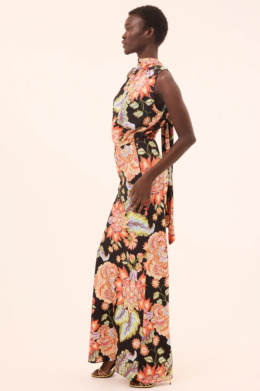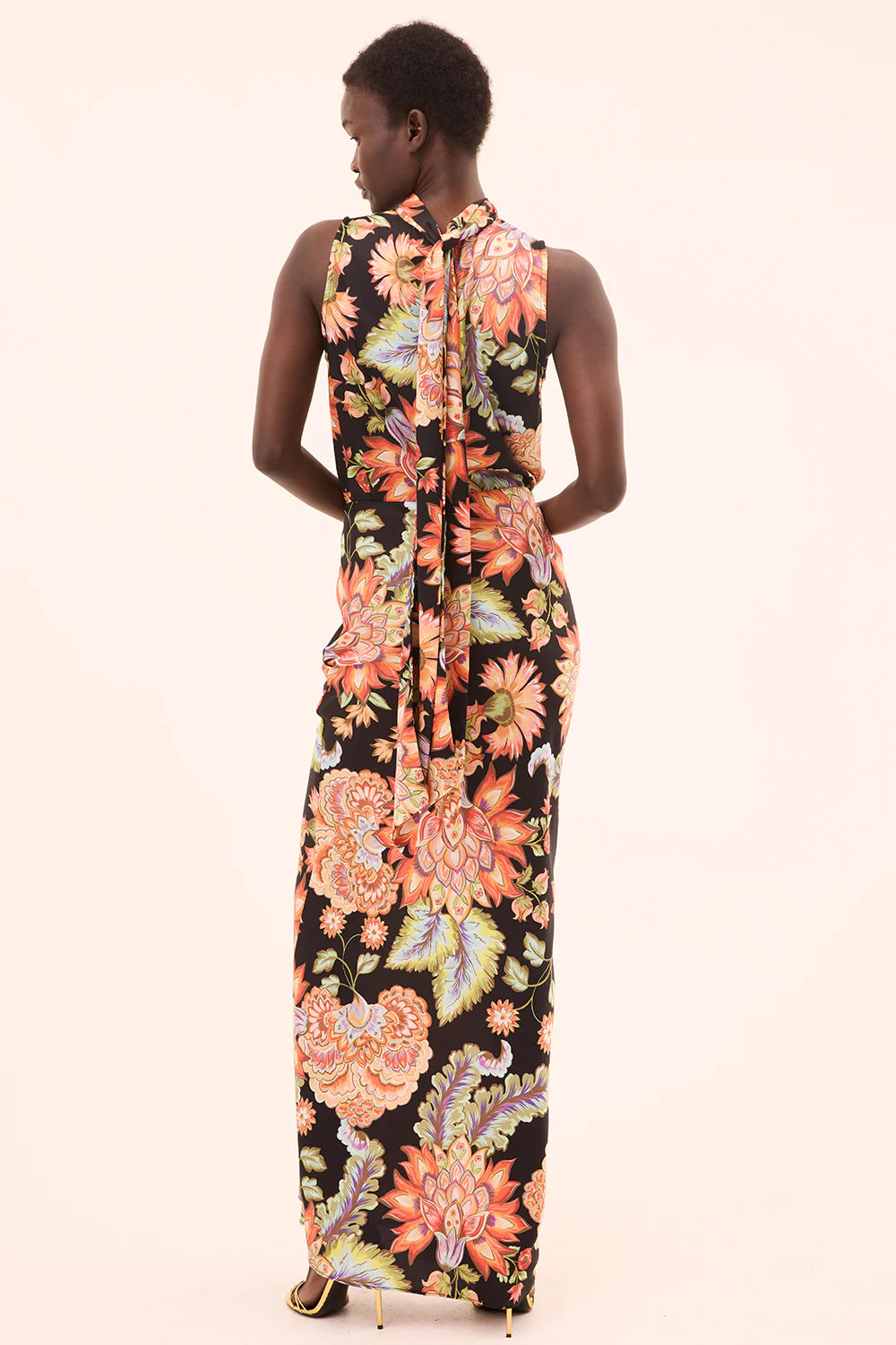 Our best-selling Sierra skirt is a maxi A-line silhouette cut on the bias for a fluid, flattering drape. Designed with a gathered waist and hidden side zip closure, it’s crafted from a head-turning Fiery Flora print satin. Pair with the coordinating Luka top for a striking set for all your fall and winter events.