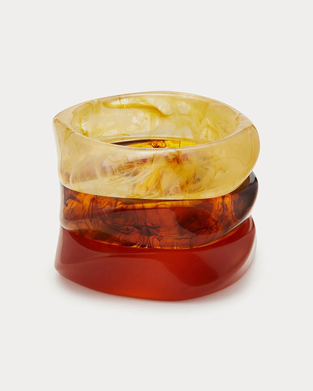 - Set of three resin statement bracelets, available in Tortoise and Red