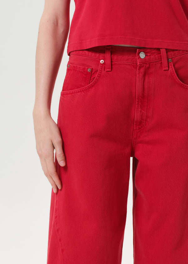 The Twist Jean features a mid rise and a relaxed, subtle sculptural shape defined by its signature twisted outseam. Crafted from rigid, medium red denim with marbled character, this standout silhouette brings an unexpected edge to any look. 100% Regenerative Cotton.